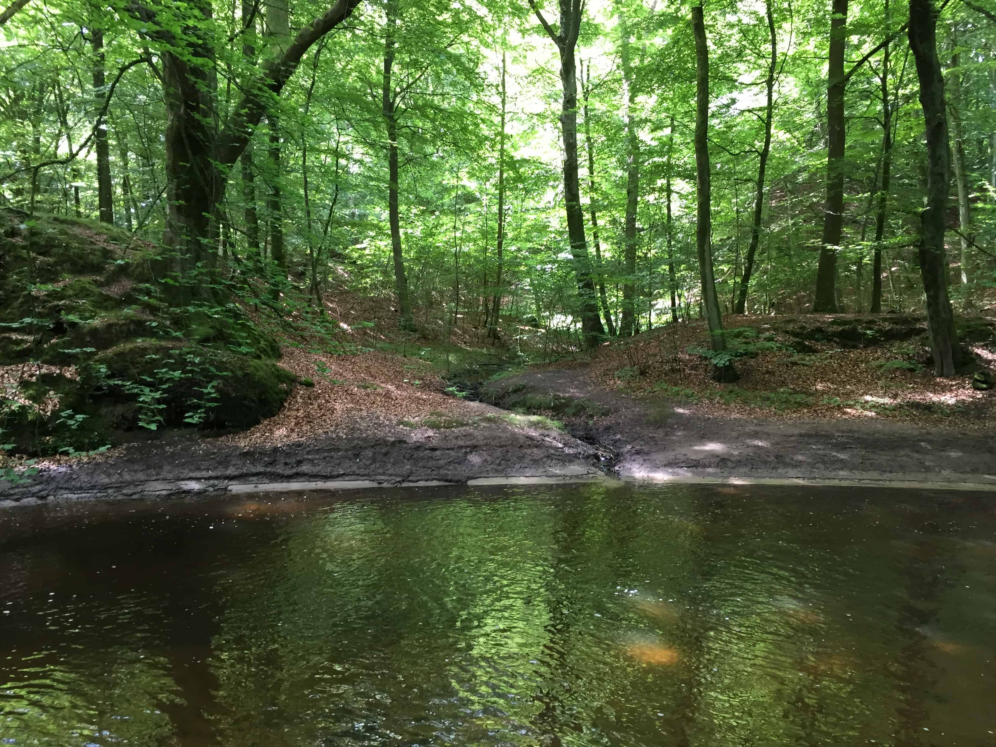 I dag har faren i huset planeret en fisketur og jeg sidder lige nu på den smukkeste spot ved en å i en bøgeskov i Sæby. Det er ærgerligt, I ikke kan høre vandet der stille løber ned i åen… For mig er det her ren terapi. Jeg keder mig ikke. Jeg lader gerne de andre to om at stå med fiskestangen jeg nyder at bare få lov at VÆRE her ved lyden af vand, fuglesang og til og fra af regndråber i træerne. Trækronerne er så tætte at jeg ikke får en dråbe på mig! Hvis ikke jeg er helt galt på den, er der en hel “flok” kantareller på den anden side af åen. Sidder og spekulerer over, hvordan jeg kommer derovre…